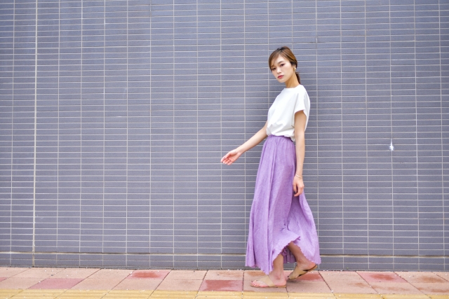スカートなので、